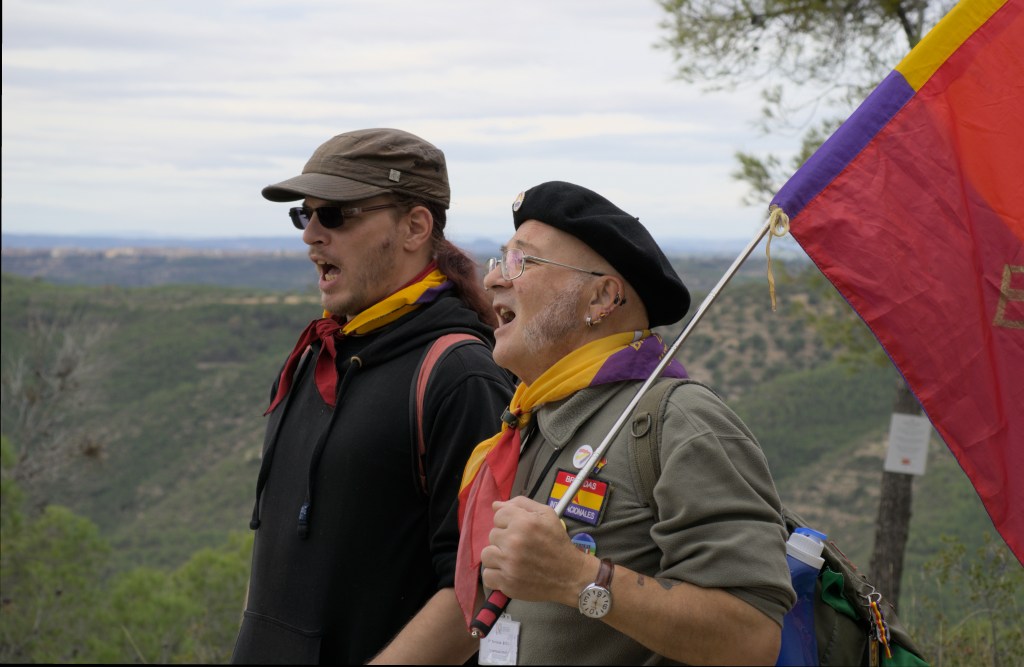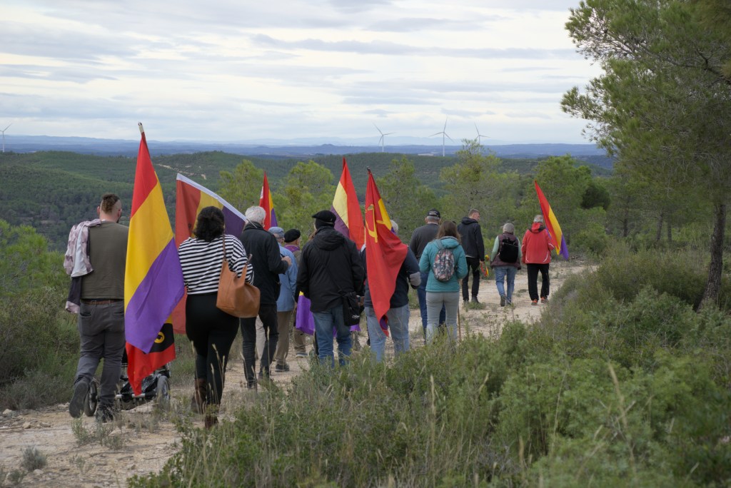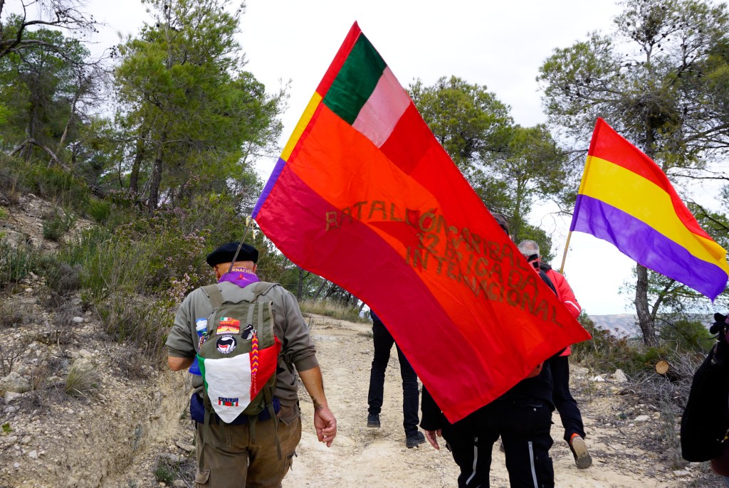 Després d’uns quinze minuts en cotxe des de la Fatarella, els assistents a l’homenatge han hagut de deixar el cotxe en un punt per continuar caminant. Italians, alemanys, francesos, escocesos i catalans han enfilat el camí de més de dos quilòmetres amb banderes republicanes mentre entonaven la Internacional, el Bella Ciao o el ¡Ay Carmela!.