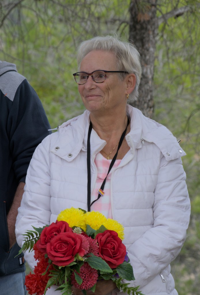 Un cop la columna roja, groga i morada ha arribat al seu lloc de pelegrinatge, representants de les associacions presents han dedicat unes paraules de record a les dones i homes que van deixar el seu país per anar a la Guerra Civil a combatre el feixisme. A continuació s’ha fet una ofrena de flors al peu del monument a les brigades internacionals.